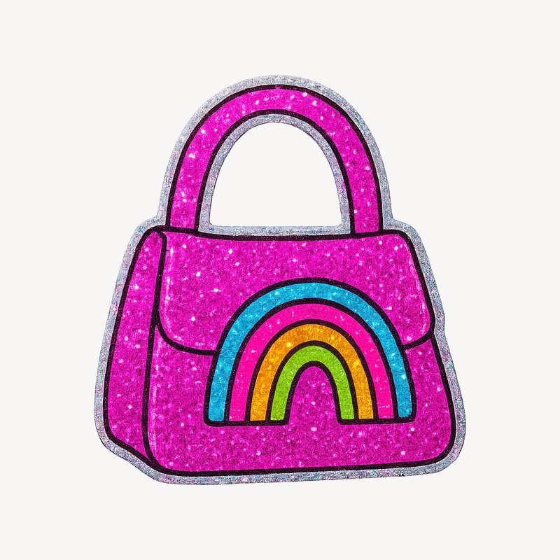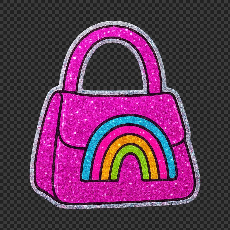 Sparkly pink handbag with rainbow. https://www.rawpixel.com/image/24855582/sparkly-pink-handbag-with-rainbowView license