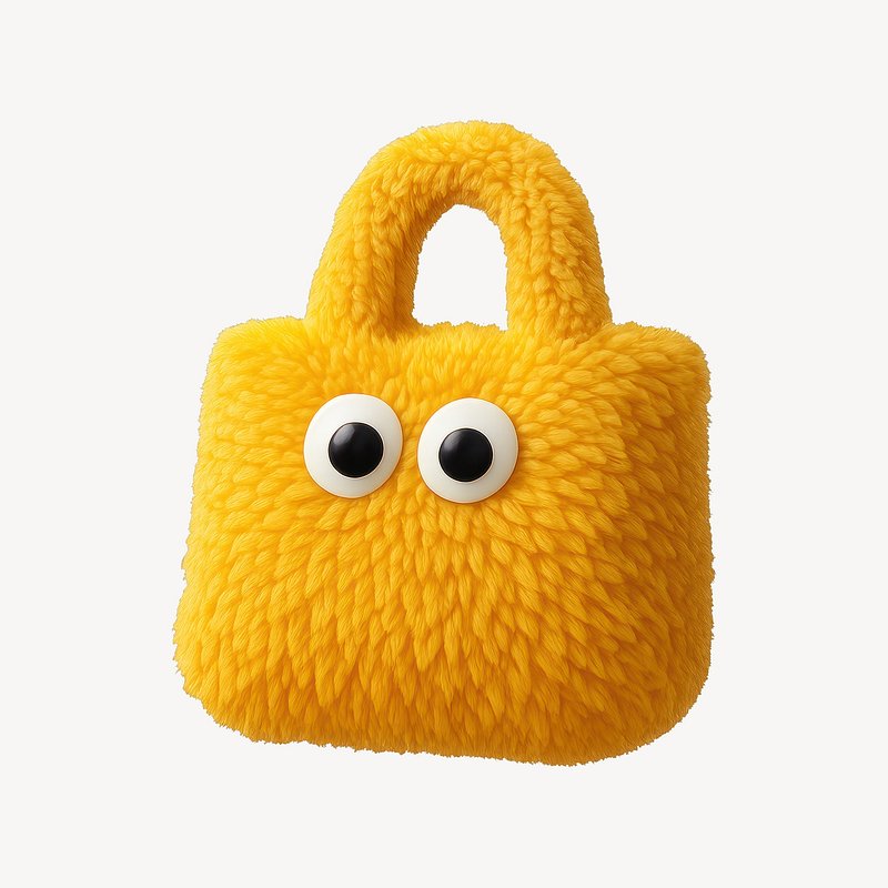 Fuzzy yellow handbag with eyes. https://www.rawpixel.com/image/24710756/fuzzy-yellow-handbag-with-eyesView license