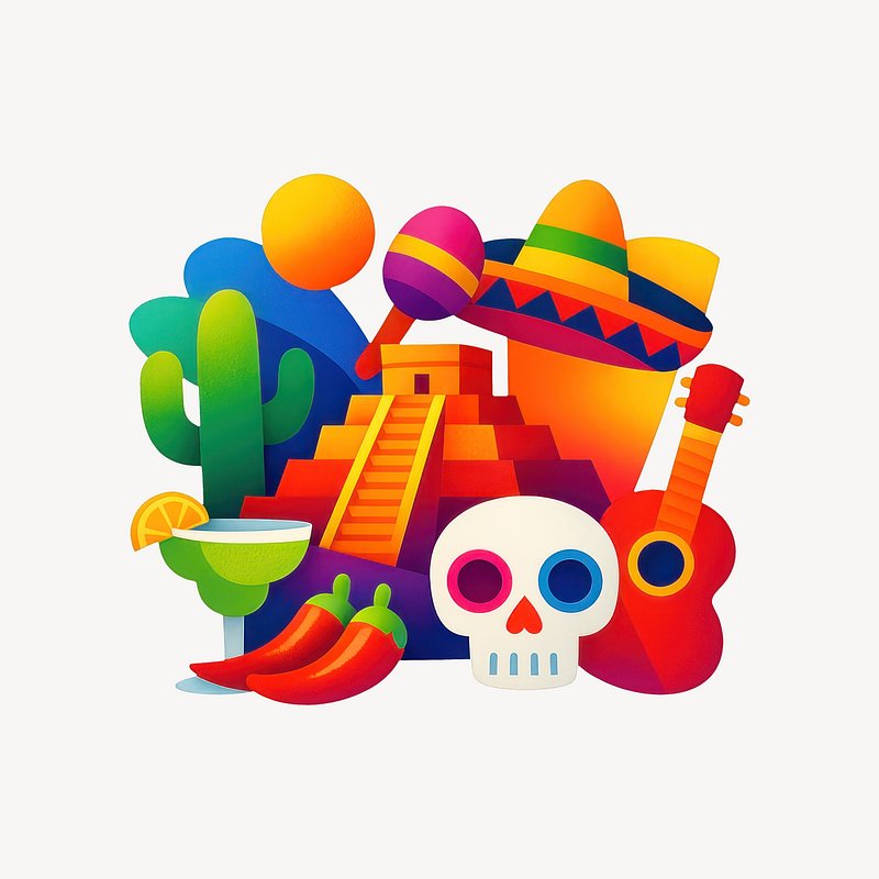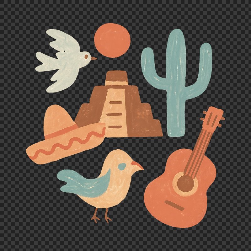 PNG Colorful Mexican cultural symbols https://www.rawpixel.com/image/24940749/png-colorful-mexican-cultural-symbolsView license