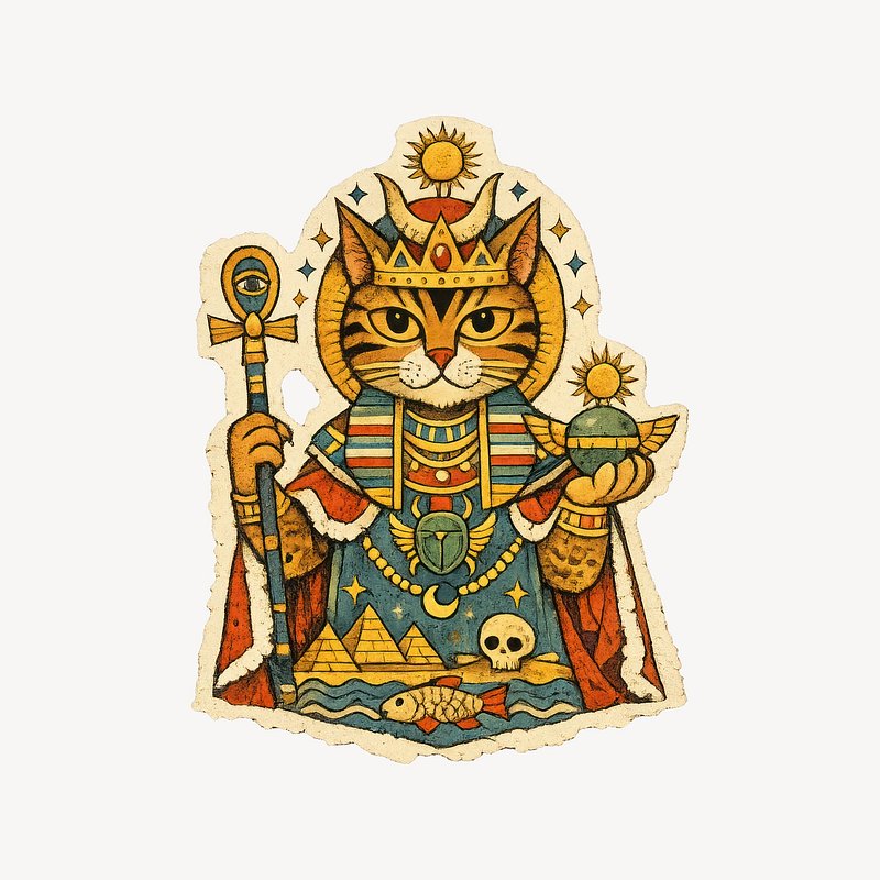 Regal cat with mystical symbols. https://www.rawpixel.com/image/25539070/regal-cat-with-mystical-symbolsView license