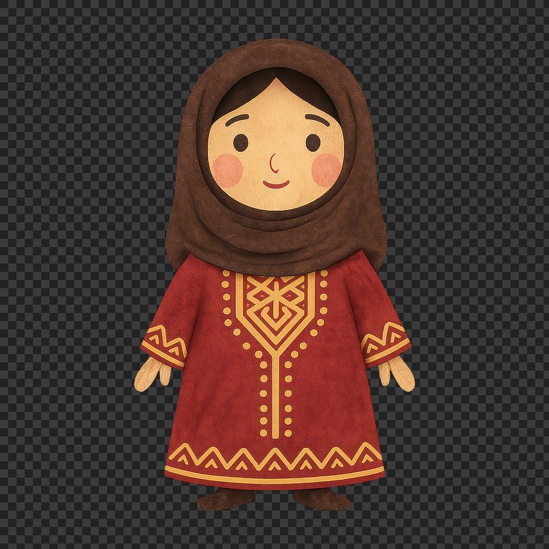 Cartoon character in traditional attire. https://www.rawpixel.com/image/19449444/cartoon-character-traditional-attireView license