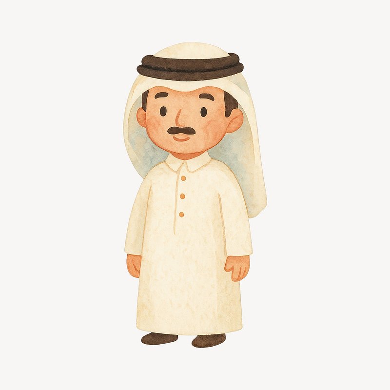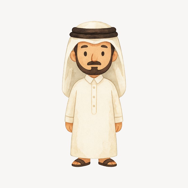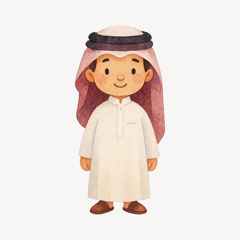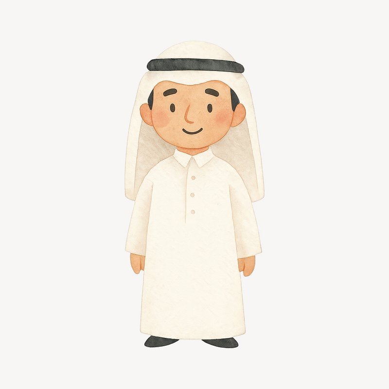 Cute cartoon character in thobe. https://www.rawpixel.com/image/21085551/cute-cartoon-character-thobeView license