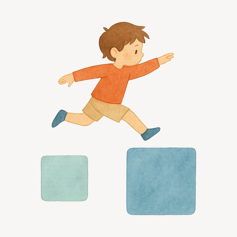 Child jumping over squares https://www.rawpixel.com/image/19379291/child-jumping-over-squaresView license