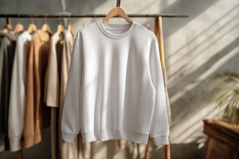 Minimalist white sweatshirt display https://www.rawpixel.com/image/23796995/minimalist-white-sweatshirt-displayView license