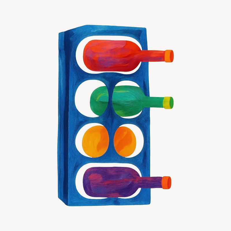 Colorful wine bottle rack illustration. https://www.rawpixel.com/image/23174435/colorful-wine-bottle-rack-illustrationView license