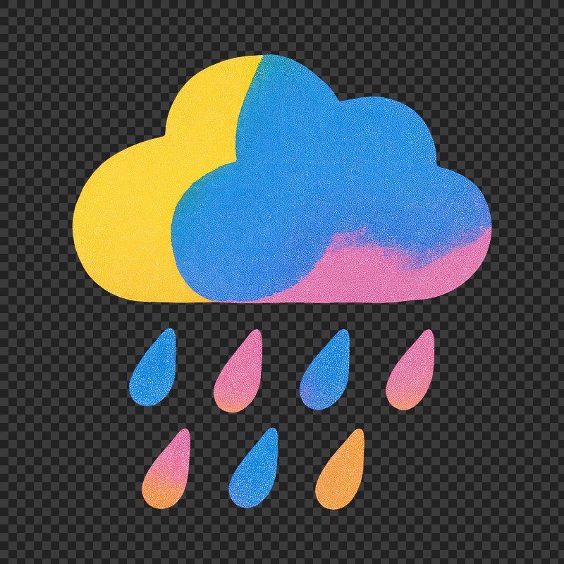 PNG Colorful cloud with raindrops. https://www.rawpixel.com/image/24551307/png-colorful-cloud-with-raindropsView license