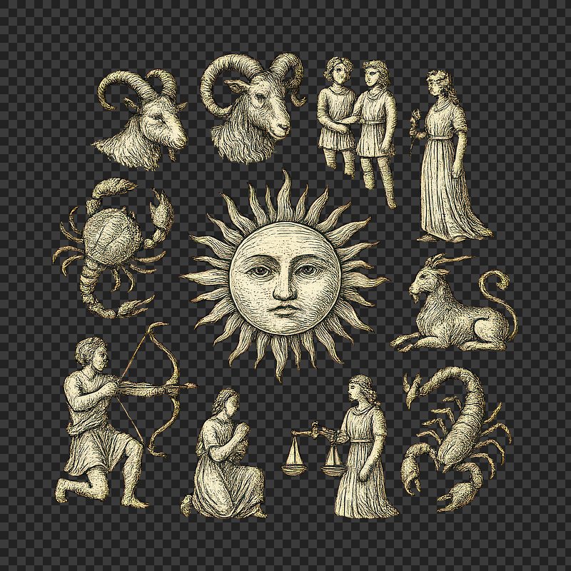 PNG Vintage zodiac signs illustration https://www.rawpixel.com/image/24136697/png-vintage-zodiac-signs-illustrationView license