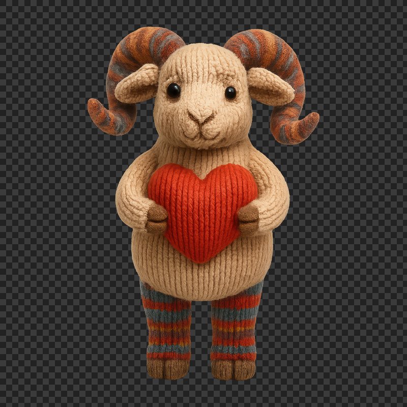 PNG Cute knitted ram holding heart. https://www.rawpixel.com/image/24521846/png-cute-knitted-ram-holding-heartView license