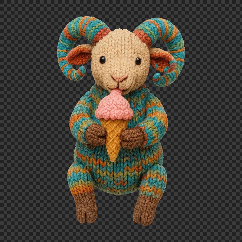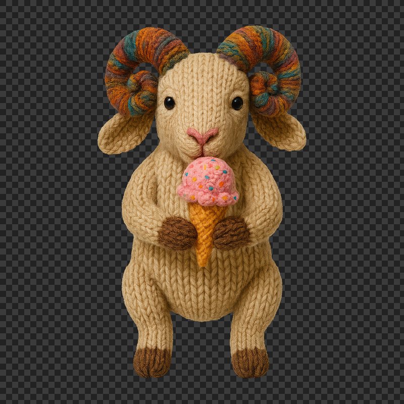 PNG Knitted ram holding ice cream. https://www.rawpixel.com/image/24521834/png-knitted-ram-holding-ice-creamView license