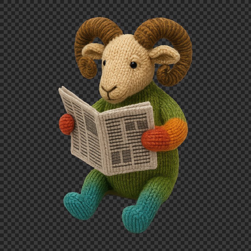 PNG Knitted ram reading newspaper. https://www.rawpixel.com/image/24524469/png-knitted-ram-reading-newspaperView license