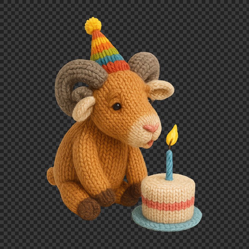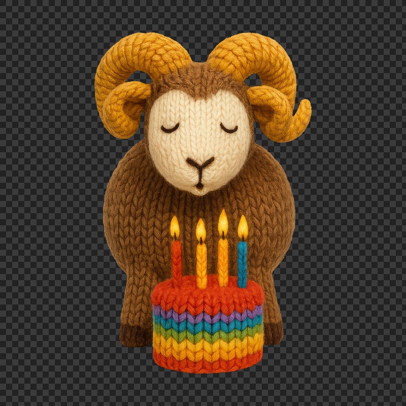 PNG Knitted ram celebrates birthday. https://www.rawpixel.com/image/24523002/png-knitted-ram-celebrates-birthdayView license