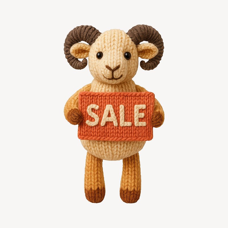 Knitted ram holding sale sign. https://www.rawpixel.com/image/24605077/knitted-ram-holding-sale-signView license