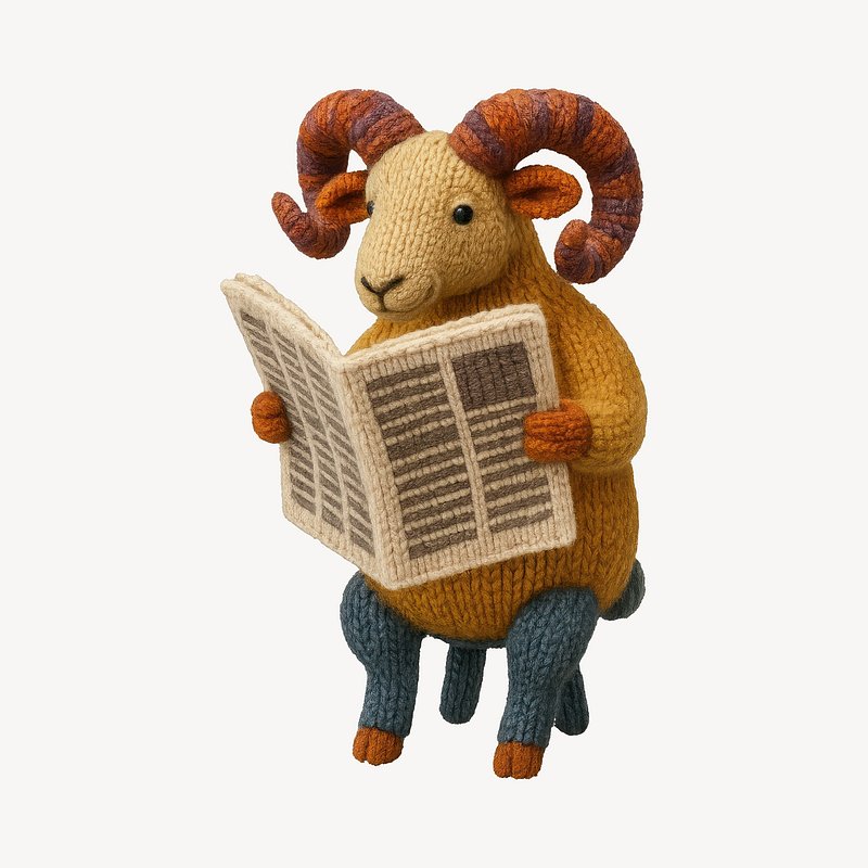 Knitted ram reading newspaper https://www.rawpixel.com/image/24603963/knitted-ram-reading-newspaperView license
