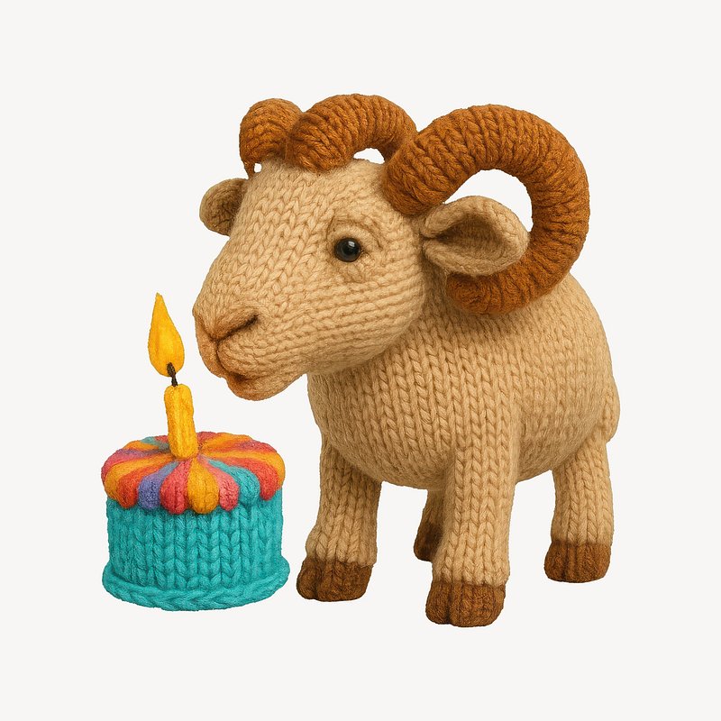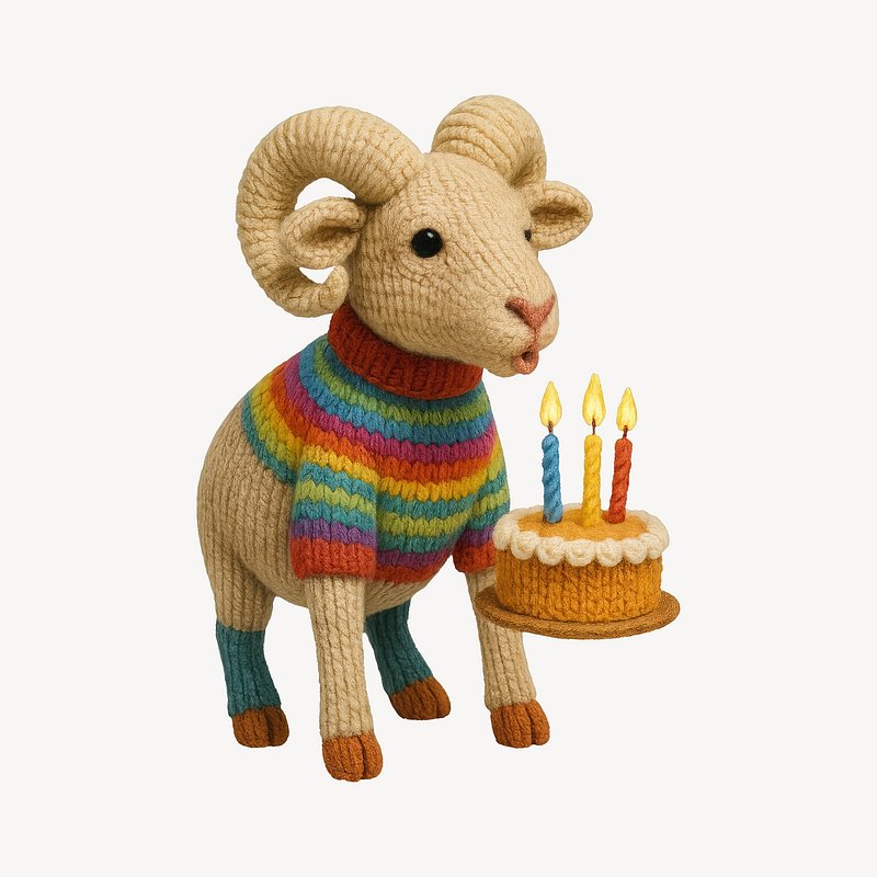Knitted ram celebrates birthday. https://www.rawpixel.com/image/24605303/knitted-ram-celebrates-birthdayView license