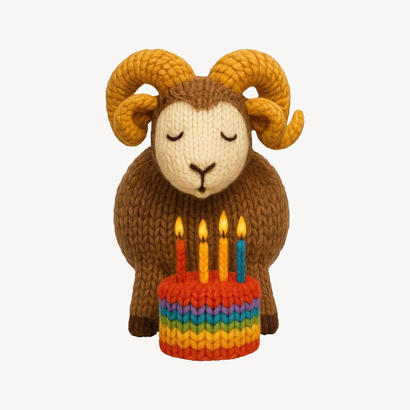 Knitted ram celebrates birthday. https://www.rawpixel.com/image/24609330/knitted-ram-celebrates-birthdayView license