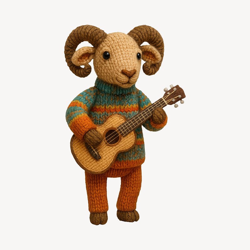 Knitted ram playing guitar https://www.rawpixel.com/image/24607677/knitted-ram-playing-guitarView license