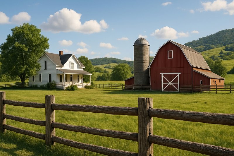 Farm architecture landscape grassland. https://www.rawpixel.com/image/12606714/farm-architecture-landscape-grassland-generated-image-rawpixelView license