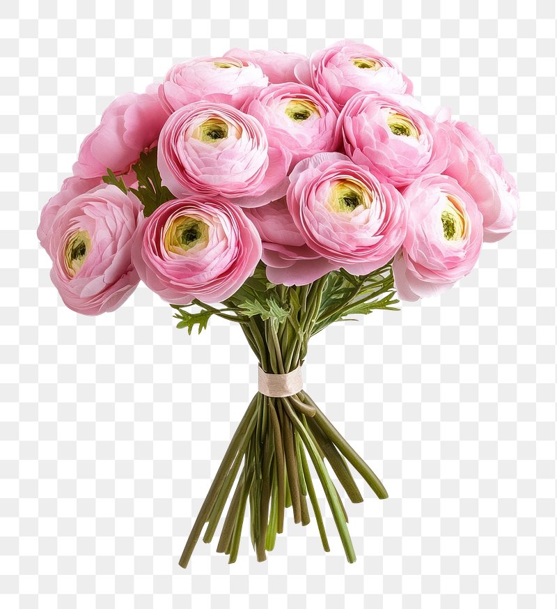 PNG Bouquet of pink ranunculus bouquet flower arrangement. https://www.rawpixel.com/image/17079362/png-bouquet-pink-ranunculus-bouquet-flower-arrangementView license