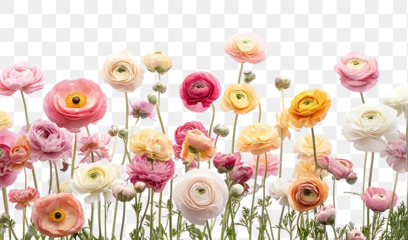 PNG Pastel Colorful ranunculus flower bed flowers colorful petals. https://www.rawpixel.com/image/17123560/png-pastel-colorful-ranunculus-flower-bed-flowers-colorful-petalsView license