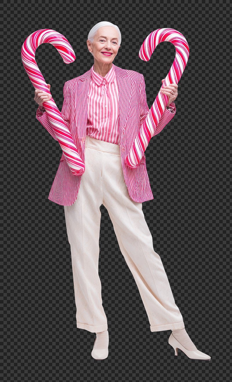 PNG Stylish elderly woman holding candy canes. https://www.rawpixel.com/image/21063047/png-stylish-elderly-woman-holding-candy-canesView license