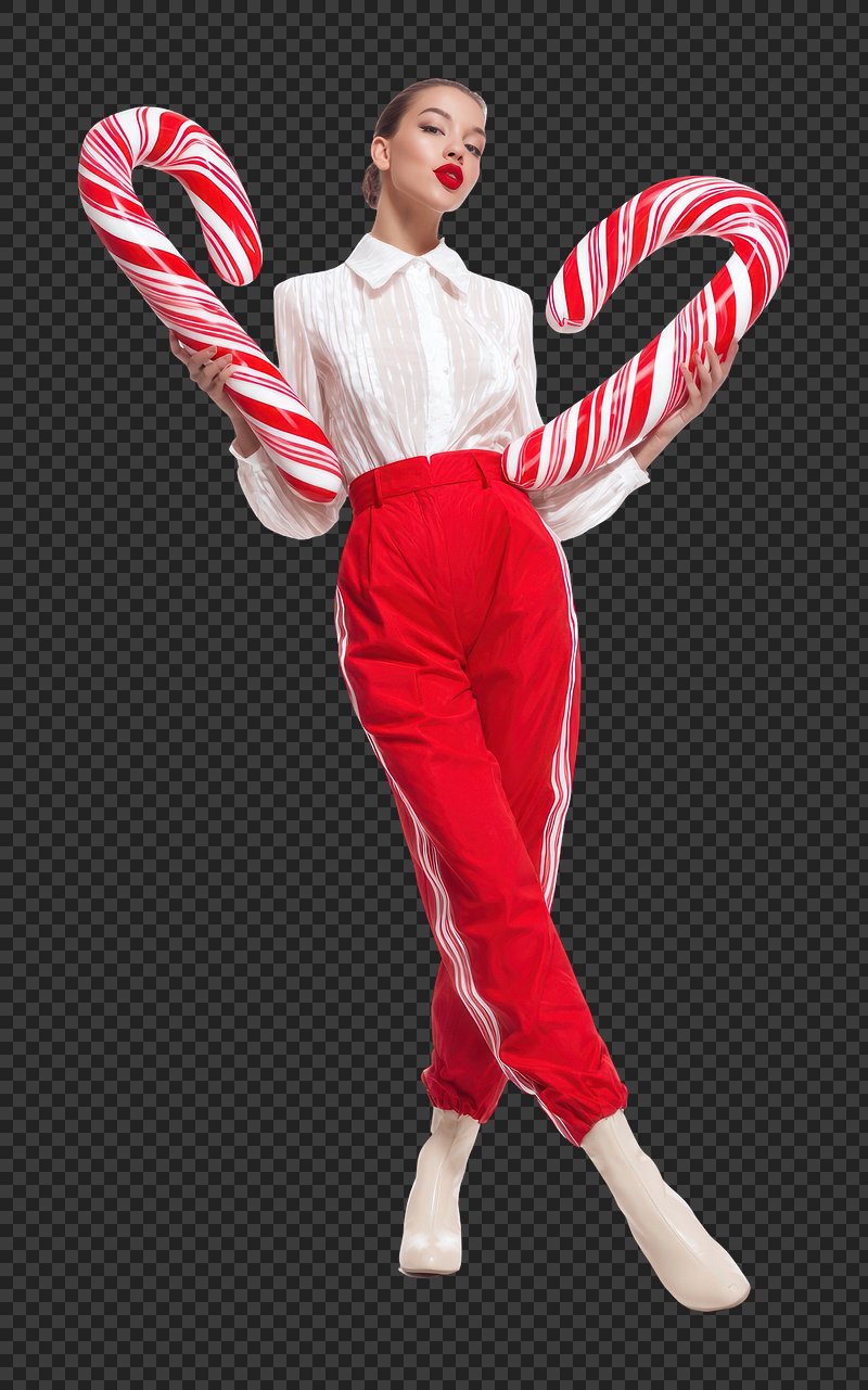 PNG Festive fashion with candy canes. https://www.rawpixel.com/image/21058134/png-festive-fashion-with-candy-canesView license