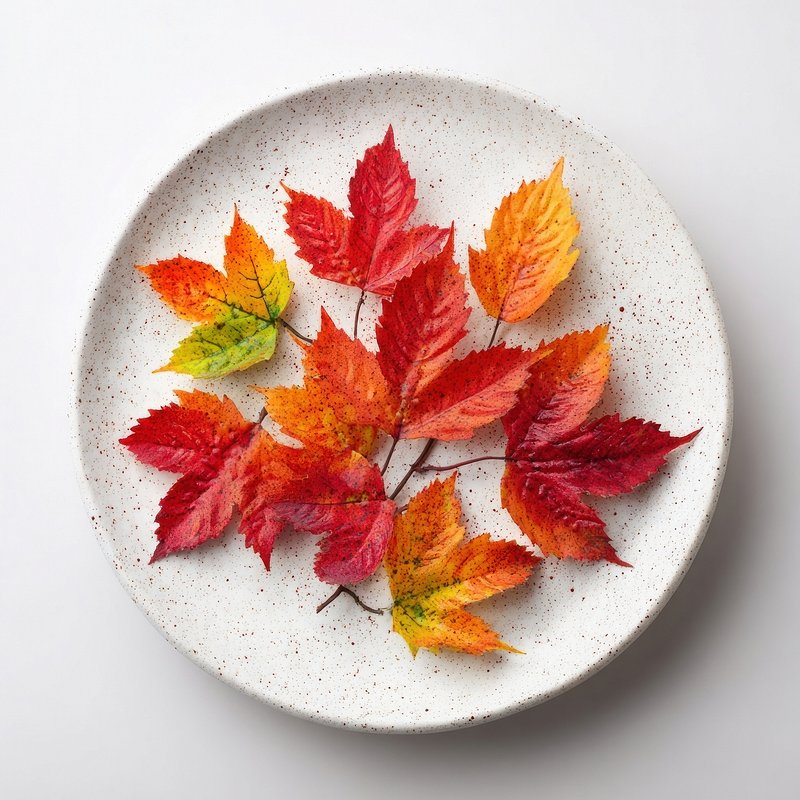Colorful autumn leaves on plate. https://www.rawpixel.com/image/20564709/colorful-autumn-leaves-plateView license