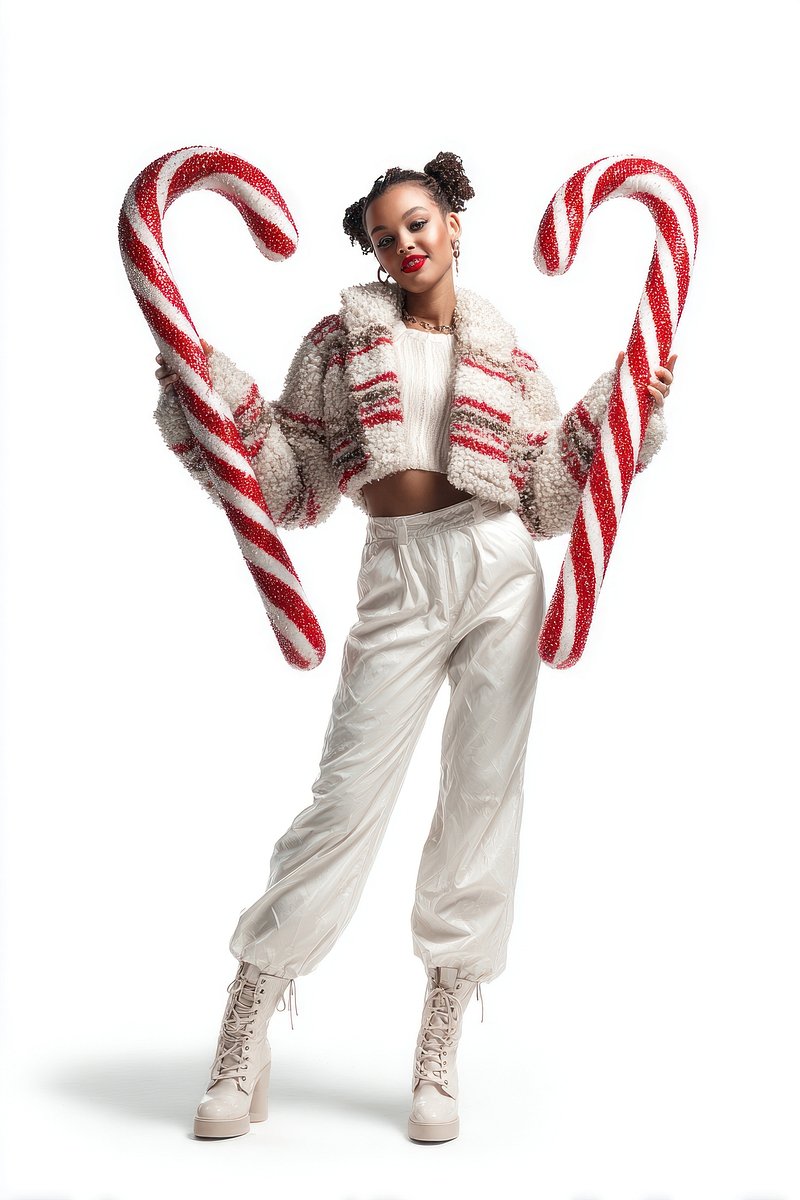 Festive fashion with candy canes. https://www.rawpixel.com/image/20780775/festive-fashion-with-candy-canesView license