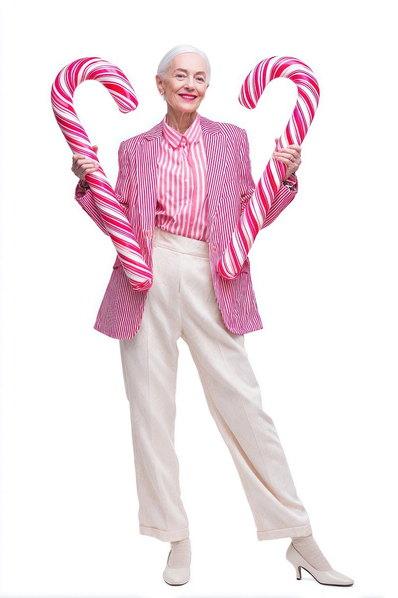 Stylish elderly woman holding candy canes. https://www.rawpixel.com/image/20780252/stylish-elderly-woman-holding-candy-canesView license