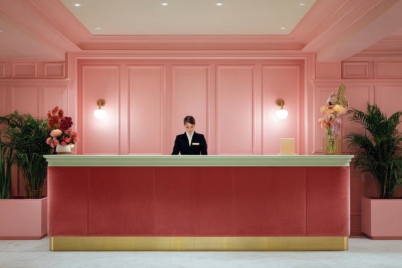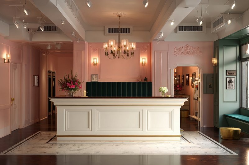 Elegant pink hotel reception area https://www.rawpixel.com/image/24060592/elegant-pink-hotel-reception-areaView license