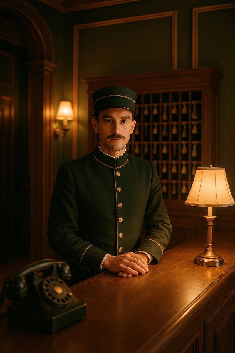 Vintage hotel concierge in uniform https://www.rawpixel.com/image/24126120/vintage-hotel-concierge-uniformView license