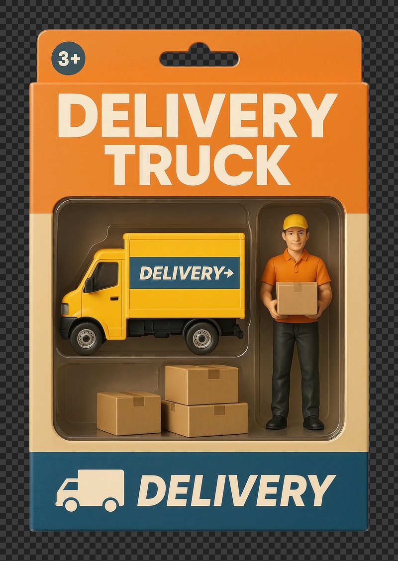 Toy delivery truck packaging illustration. https://www.rawpixel.com/image/17522587/toy-delivery-truck-packaging-illustrationView license