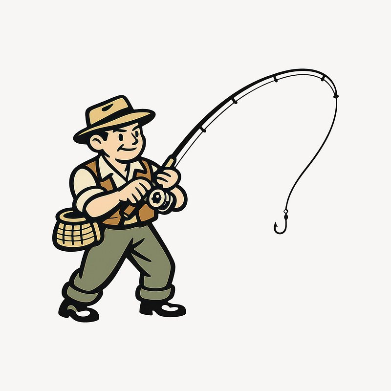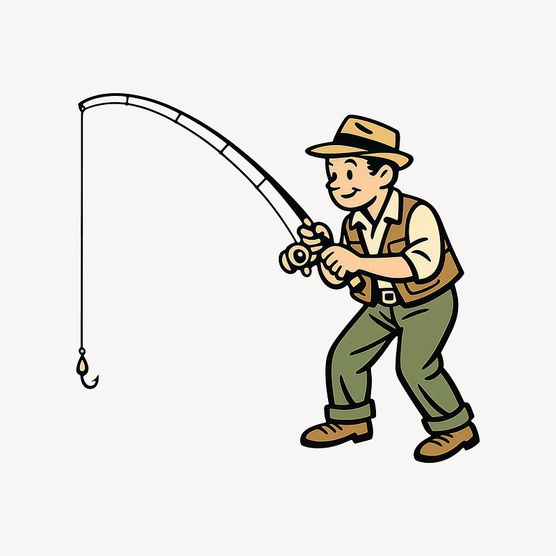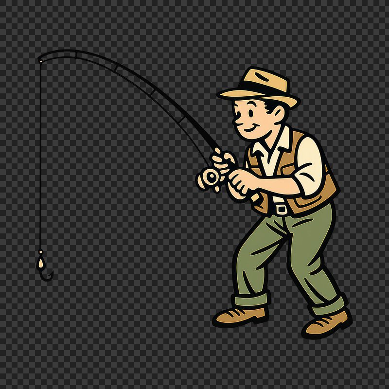 Cartoon fisherman holding fishing rod. https://www.rawpixel.com/image/25625644/cartoon-fisherman-holding-fishing-rodView license
