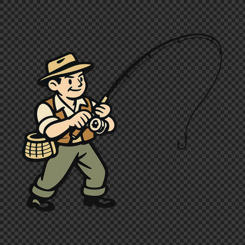 PNG Cartoon fisherman holding fishing rod. https://www.rawpixel.com/image/25575934/png-cartoon-fisherman-holding-fishing-rodView license