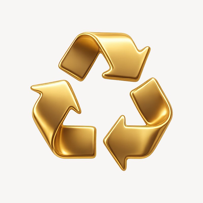 Golden recycling symbol illustration. https://www.rawpixel.com/image/22326985/golden-recycling-symbol-illustrationView license