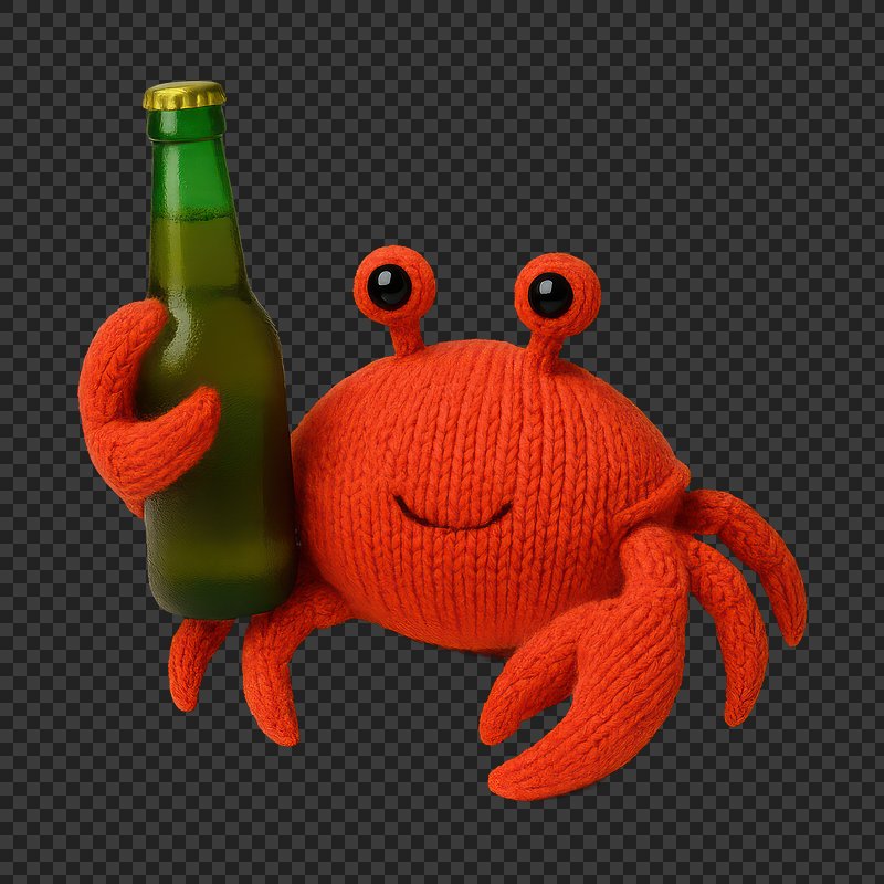 PNG Knit crab holding bottle cheerfully. https://www.rawpixel.com/image/24440325/png-knit-crab-holding-bottle-cheerfullyView license