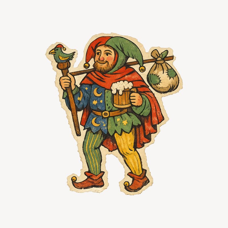 Medieval jester with beer. https://www.rawpixel.com/image/25534339/medieval-jester-with-beerView license