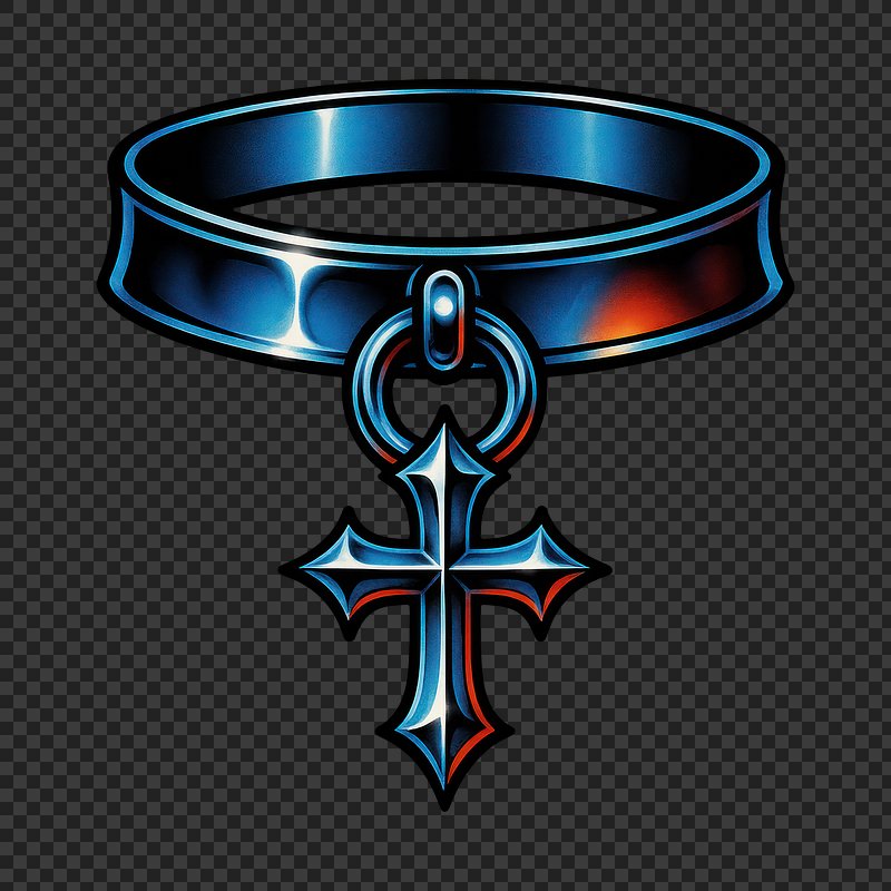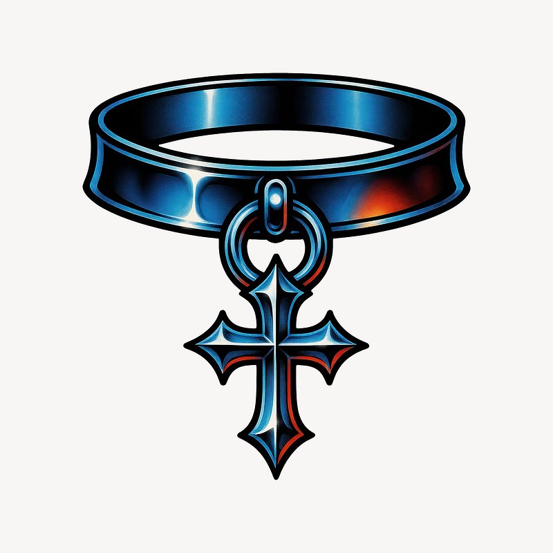 PNG Metallic choker with cross pendant. https://www.rawpixel.com/image/21691667/png-metallic-choker-with-cross-pendantView license