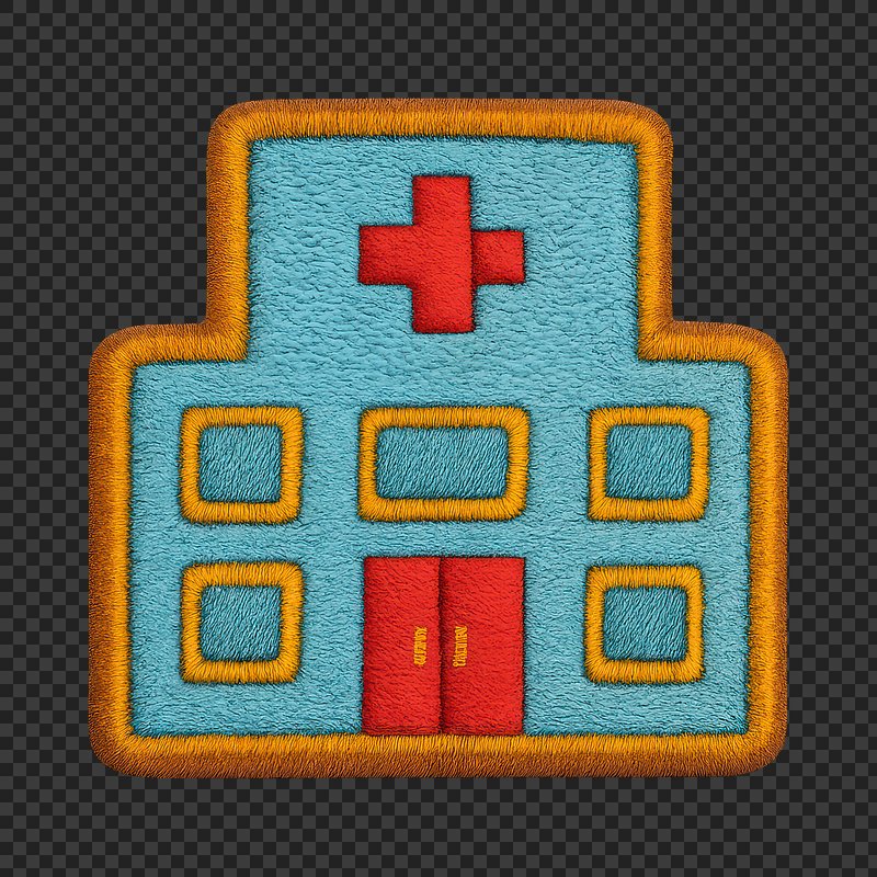 PNG Colorful embroidered hospital icon. https://www.rawpixel.com/image/21322123/png-colorful-embroidered-hospital-iconView license