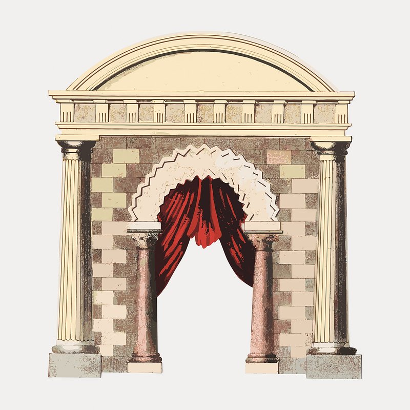 Vintage curtain & arch architecture illustration, vector element. Remixed by rawpixel. https://www.rawpixel.com/image/16660200/vector-art-vintage-designView license