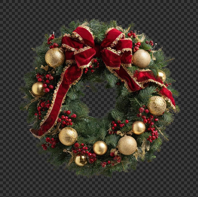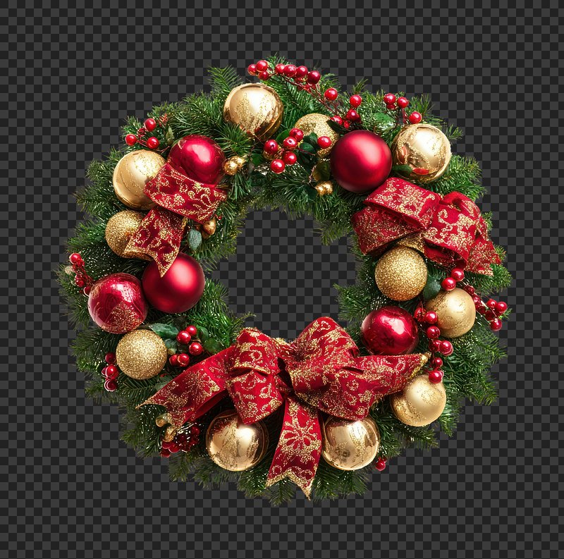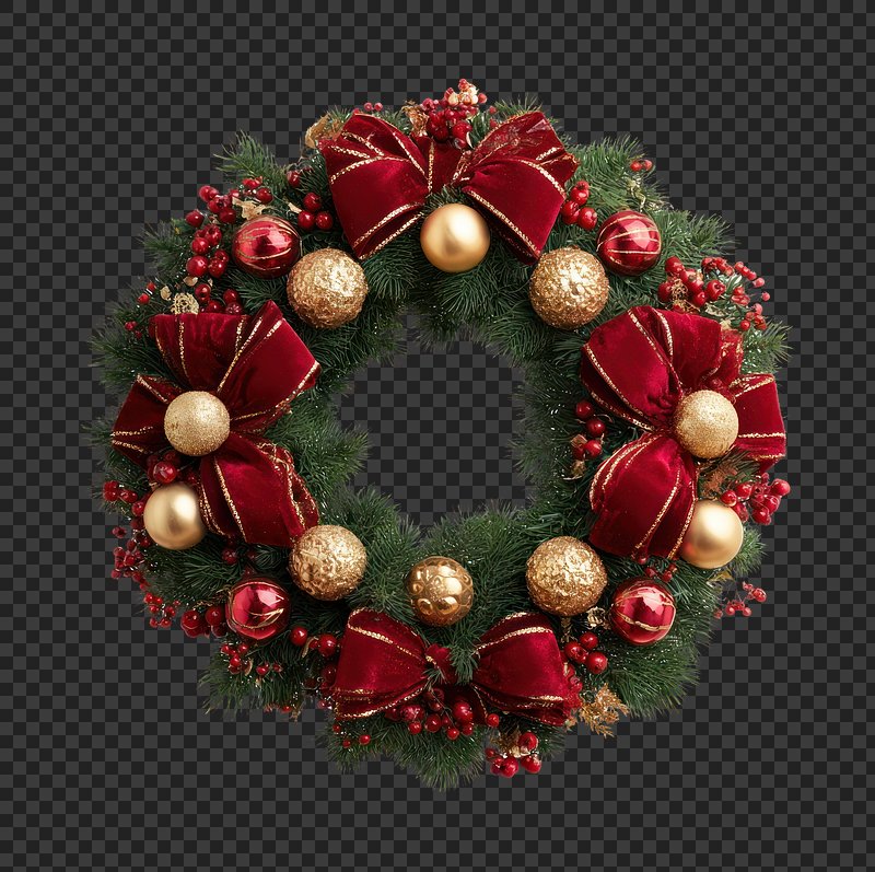 PNG Festive wreath with red accents. https://www.rawpixel.com/image/22157135/png-festive-wreath-with-red-accentsView license