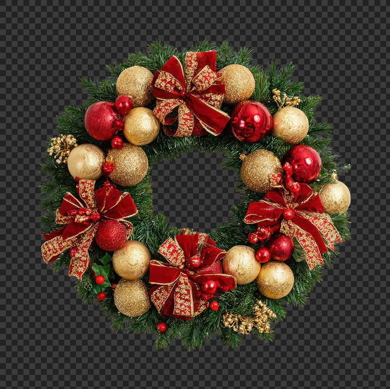 PNG Festive wreath with ornaments. https://www.rawpixel.com/image/22159456/png-festive-wreath-with-ornamentsView license