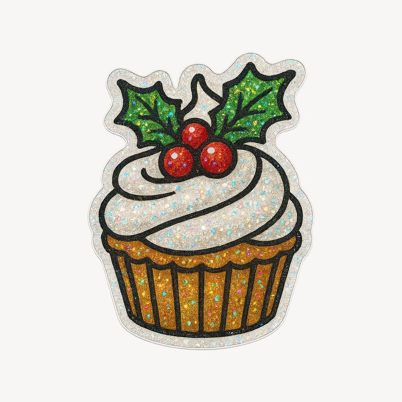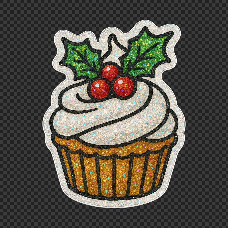 PNG Festive cupcake with holly decoration. https://www.rawpixel.com/image/22925121/png-festive-cupcake-with-holly-decorationView license