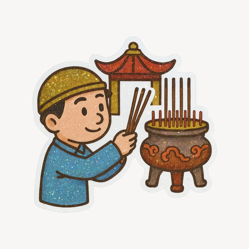 Cartoon incense offering ritual. https://www.rawpixel.com/image/23114894/cartoon-incense-offering-ritualView license