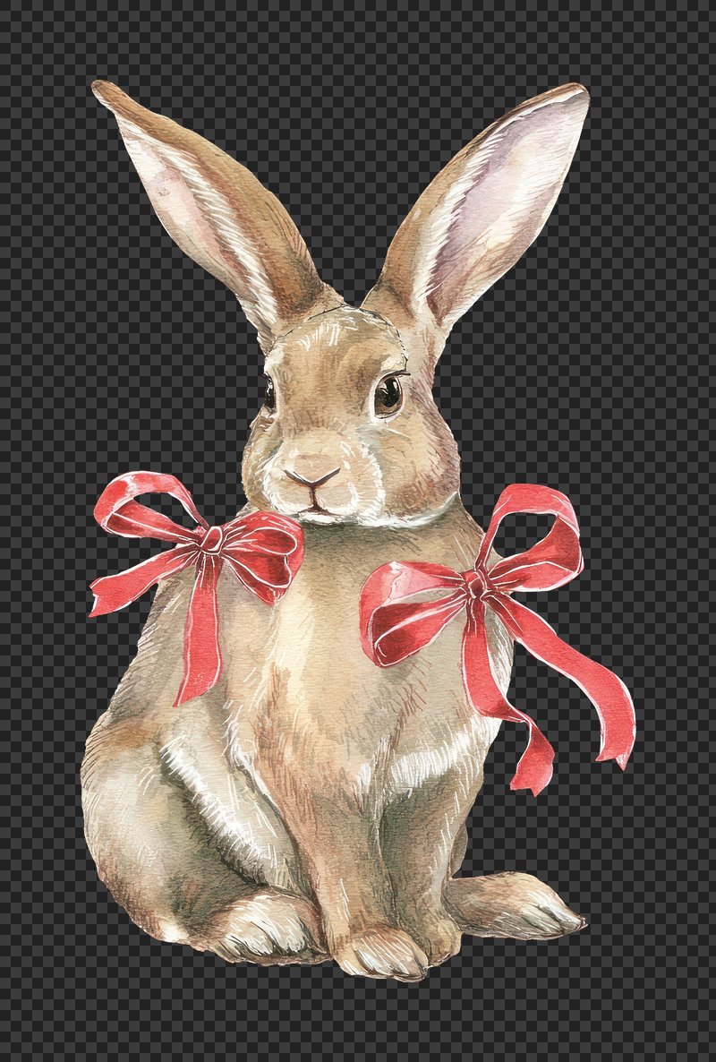 PNG Charming rabbit with red bows. https://www.rawpixel.com/image/25252815/png-charming-rabbit-with-red-bowsView license