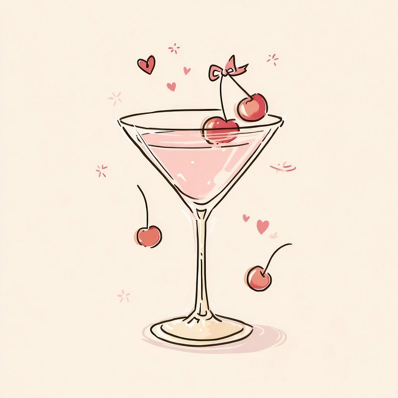 Charming cocktail illustration with cherries. https://www.rawpixel.com/image/24790084/charming-cocktail-illustration-with-cherriesView license