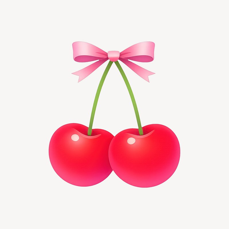 PNG Bright cherries with pink ribbon. https://www.rawpixel.com/image/25380820/png-bright-cherries-with-pink-ribbonView license