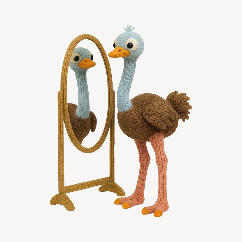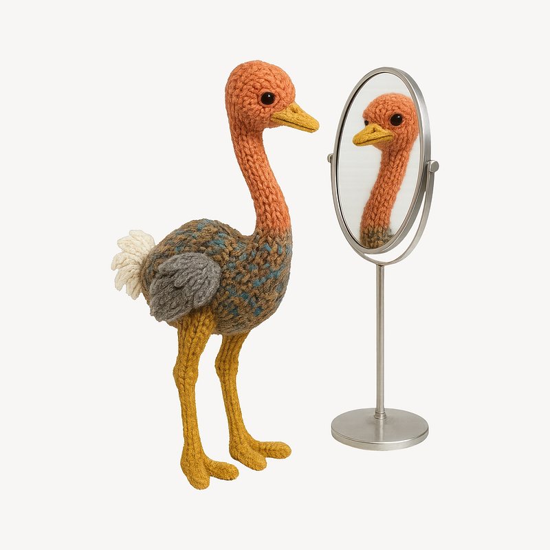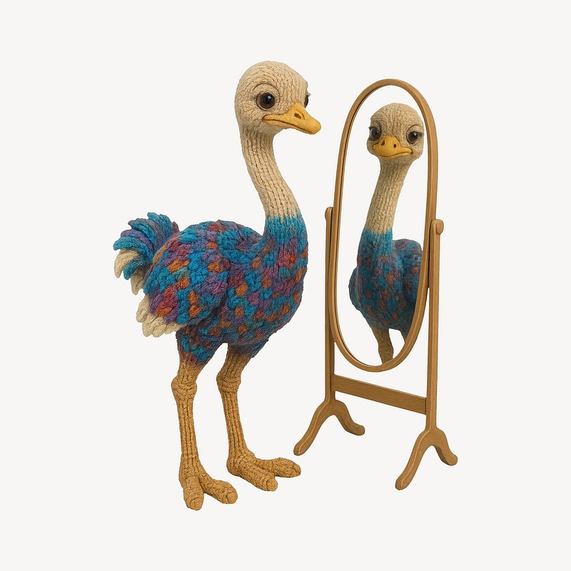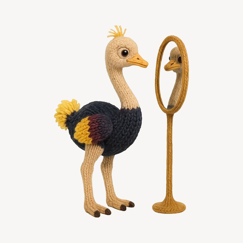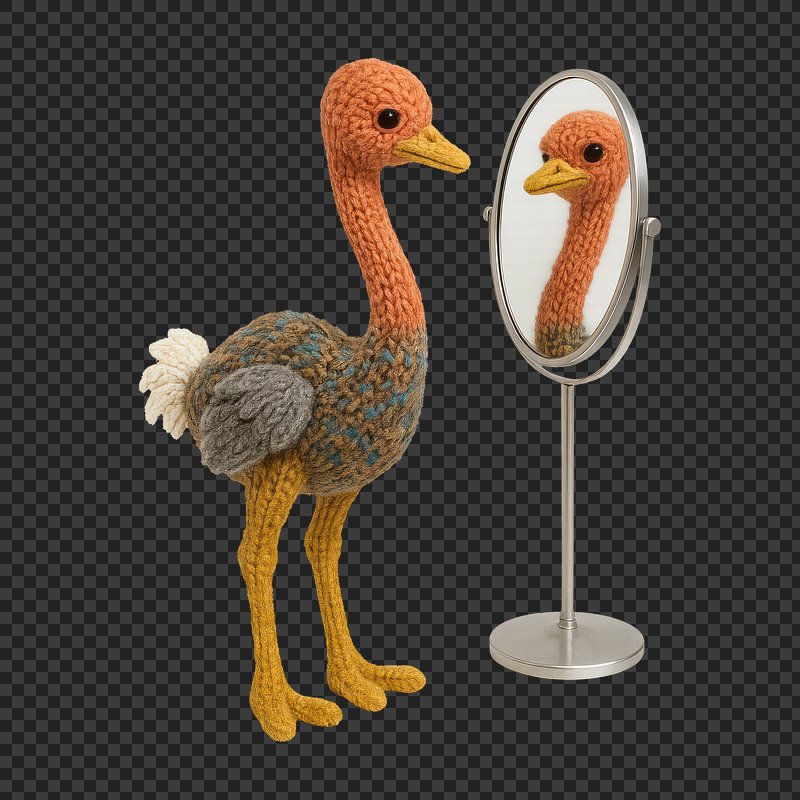 Knitted ostrich admiring reflection. https://www.rawpixel.com/image/24605158/knitted-ostrich-admiring-reflectionView license