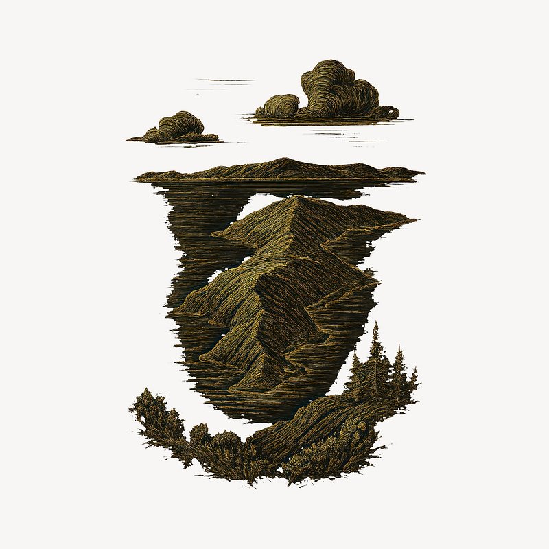 PNG Surreal landscape with mirrored mountains. https://www.rawpixel.com/image/24416448/png-surreal-landscape-with-mirrored-mountainsView license