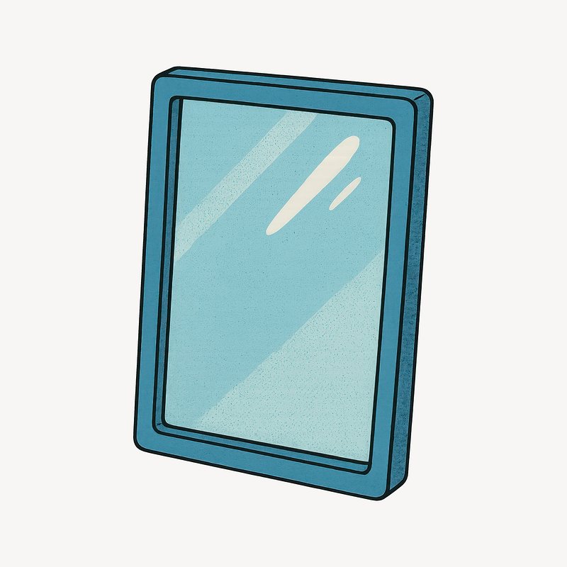 Blue framed reflective mirror illustration. https://www.rawpixel.com/image/24714258/blue-framed-reflective-mirror-illustrationView license
