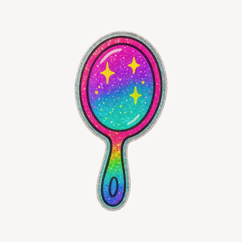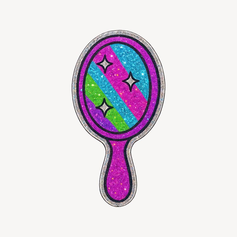 Colorful glittery hand mirror illustration. https://www.rawpixel.com/image/24856064/colorful-glittery-hand-mirror-illustrationView license